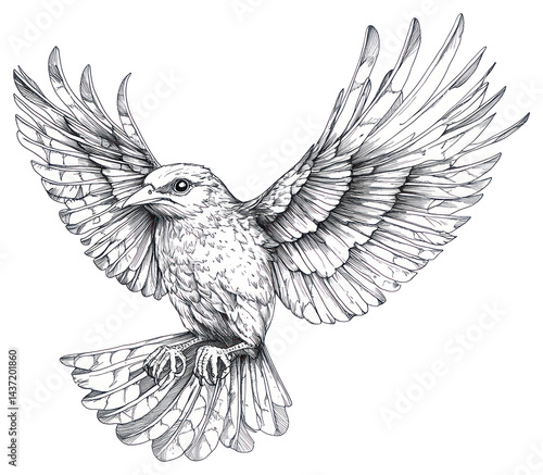 © Rawpixel.com, Obraz premium PNG Bird illustration drawing white.