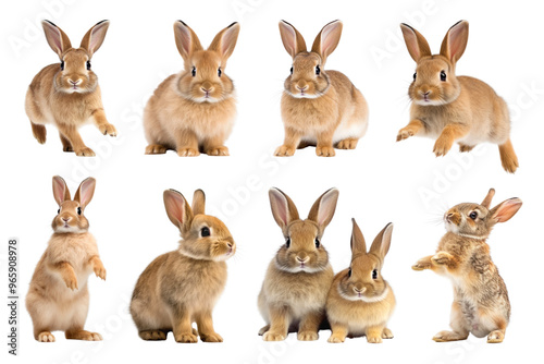 © Rawpixel.com, Obraz premium PNG brown rabbit design element set, transparent background