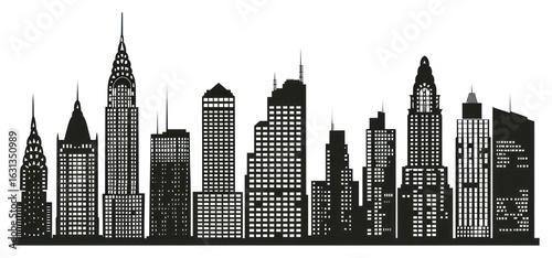 Naklejka premium PNG Buildings silhouette clip art architecture metropolis skyscraper.