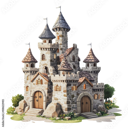 © ColdFire, Fototapeta premium PNG Charming stone castle surrounded by greenery