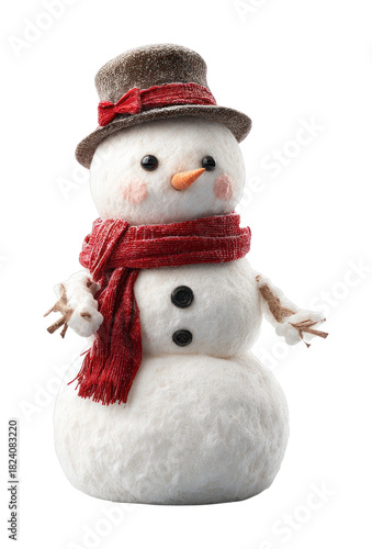 © Rawpixel.com, Obraz premium PNG Cheerful snowman with red scarf.