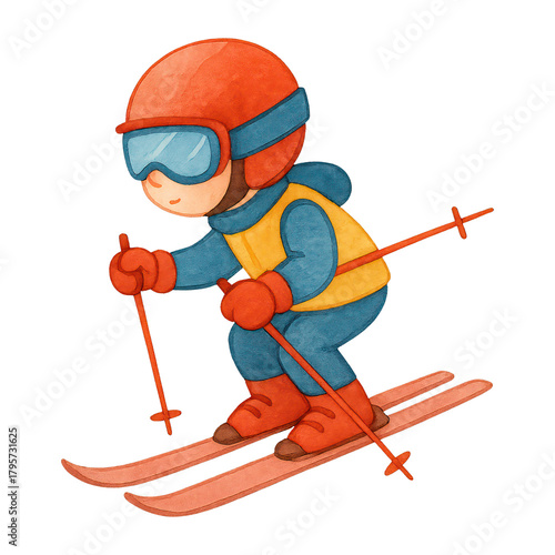 © Rawpixel.com, Obraz premium PNG Child skiing colorful winter illustration.