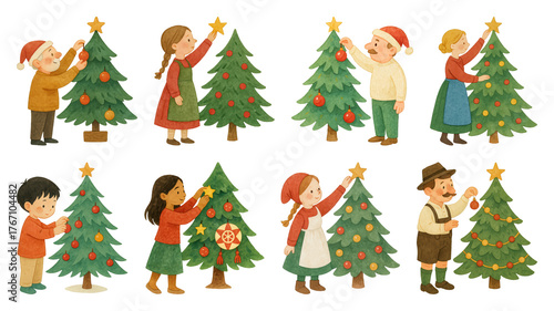 © Rawpixel.com, Fototapeta premium PNG Children decorating Christmas trees joyfully, element set on transparent background