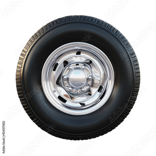 Obraz premium PNG Close-up of a silver alloy wheel with a black tire on a white background