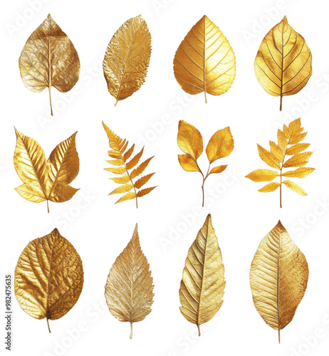Obraz premium PNG Collection of golden leaves arranged in a grid