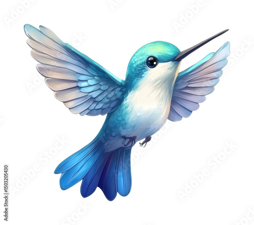 © BraveSpirit, Obraz premium PNG Colorful artistic hummingbird with vibrant blue and white feathers