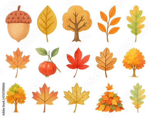 © Rawpixel.com, Obraz premium PNG Colorful autumn leaves and trees, element set on transparent background