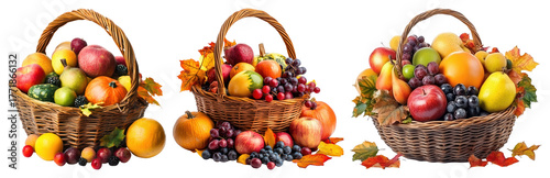 Obraz premium PNG Colorful baskets of fresh fruits, element set on transparent background