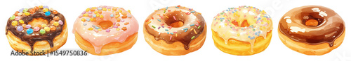 Fototapeta premium PNG Colorful donuts with various toppings, element set on transparent background