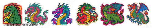Obraz premium PNG Colorful dragon sticker collection, element set on transparent background