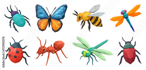 Fototapeta premium PNG Colorful geometric insect illustrations, element set on transparent background