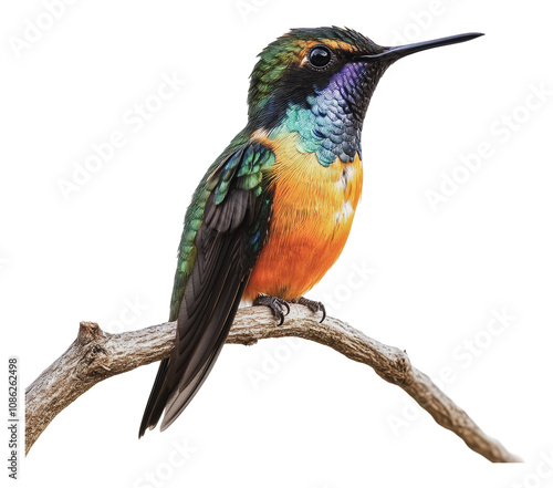 © ColdFire, Fototapeta premium PNG Colorful hummingbird perched on a branch in nature