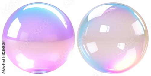 Obraz premium PNG Colorful iridescent glass spheres, element set on transparent background