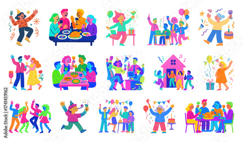 Obraz premium PNG Colorful joyful illustrations celebrating togetherness, element set on transparent background
