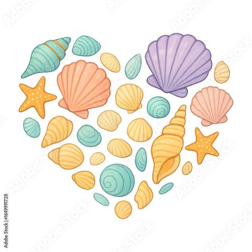 Obraz premium PNG Colorful seashell heart illustration