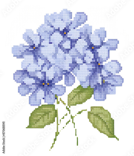 Obraz premium PNG Cross stitch hydrangea embroidery needlework pattern.