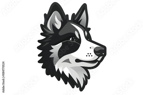 © Peeradontax, Naklejka premium PNG cut out isolated background. A detailed black and white profile illustration of a dog’s head, showcasing its alert expression and friendly demeanor.