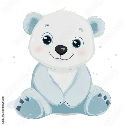 © ColdFire, Fototapeta premium PNG Cute cartoon polar bear sitting on ice with joy