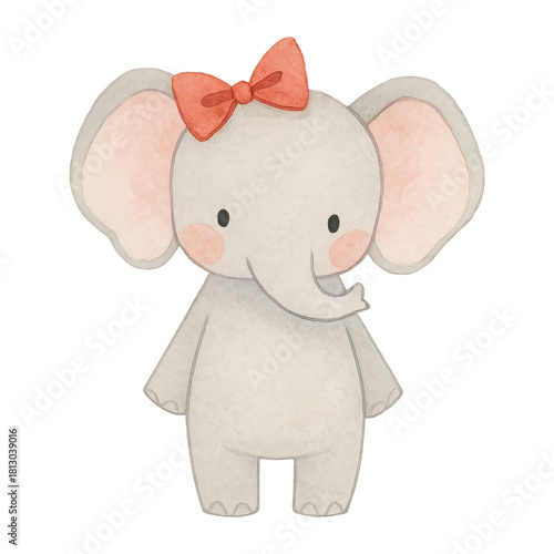 © Rawpixel.com, Naklejka premium PNG Cute elephant with red bow
