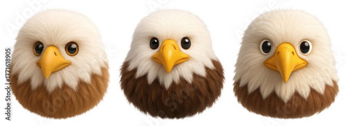 Fototapeta premium PNG Cute fluffy eagle heads, element set on transparent background