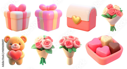 Fototapeta premium PNG Cute pastel gifts and flowers, element set on transparent background