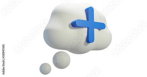 Obraz premium Png 3d render bubble chat with cloud shape, white color, and plus sign