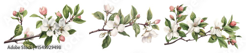 Fototapeta premium PNG Delicate floral branch illustration, element set on transparent background