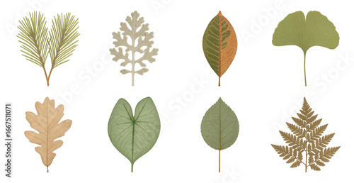 Fototapeta premium PNG Diverse botanical leaf illustrations collection, element set on...