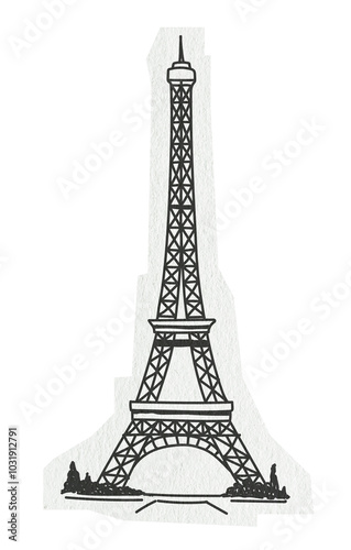 Fototapeta premium PNG Eiffel tower, line art illustration, transparent background