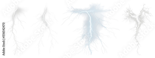 Obraz premium PNG Electricity bolts striking sky, element set on transparent background