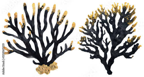Naklejka premium PNG Elegant black gold coral illustration, element set on transparent background