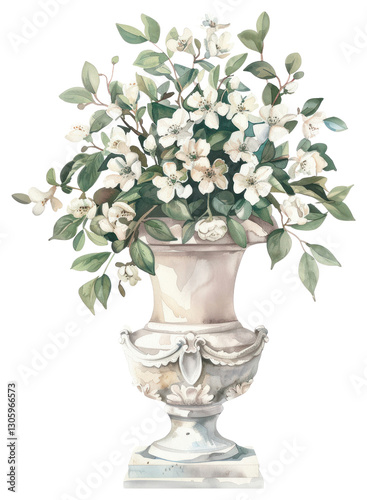 © Rawpixel.com, Obraz premium PNG Elegant floral vase illustration