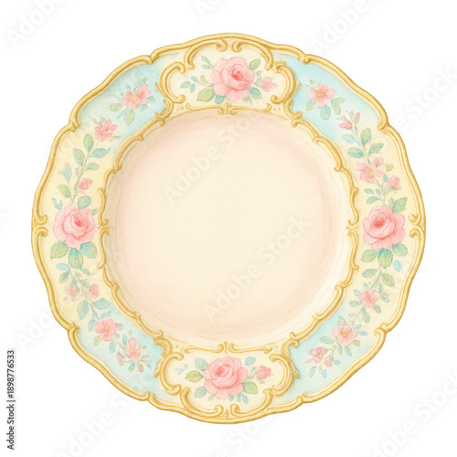Fototapeta premium PNG Elegant floral vintage plate illustration.