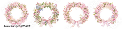 Fototapeta premium PNG Elegant floral wreaths with ribbons on transparent background