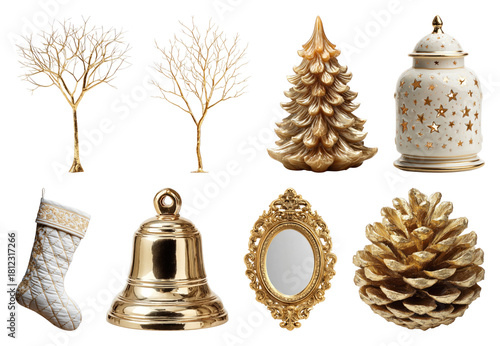Obraz premium PNG Elegant gold Christmas decorations collection, element set on transparent...