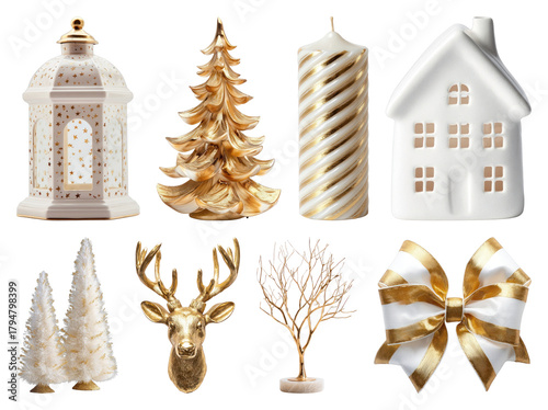 Fototapeta premium PNG Elegant gold holiday decorations collection, element set on transparent background