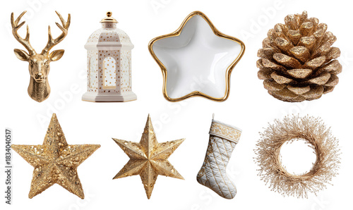 Obraz premium PNG Elegant gold holiday decorations collection, element set on transparent background