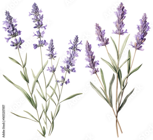 Naklejka premium PNG Elegant lavender botanical illustration, element set on transparent...