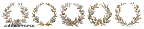 Obraz premium PNG Elegant metallic laurel wreaths design, element set on transparent...