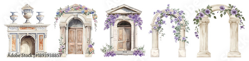 Obraz premium PNG Elegant watercolor architectural arches, element set on transparent...
