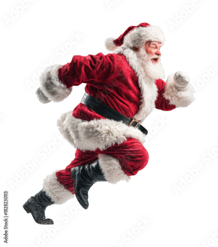 Fototapeta premium PNG Energetic Santa running joyfully.