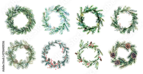 Obraz premium PNG Festive evergreen wreath collection, element set on transparent background