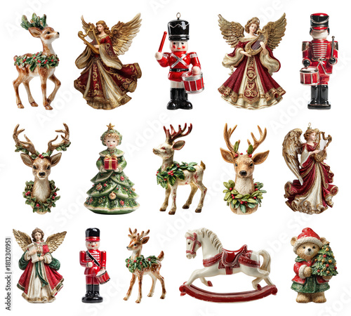 © Rawpixel.com, Naklejka premium PNG Festive figurines evoke holiday spirit, element set on transparent background
