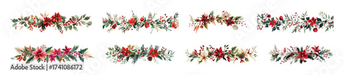 © Rawpixel.com, Naklejka premium PNG Festive floral borders for decoration, element set on transparent background