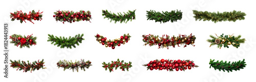 Fototapeta premium PNG Festive garlands with red berries, element set on transparent background