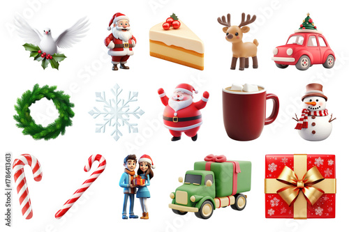 Naklejka premium PNG Festive holiday icons collection, element set on transparent background