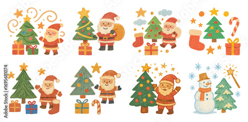 Fototapeta premium PNG Festive Santa Christmas illustrations, element set on transparent background