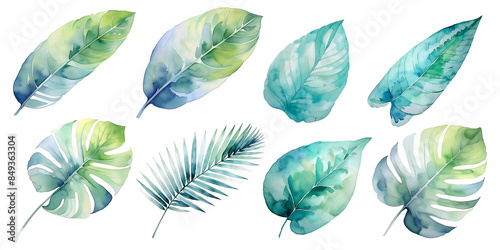 © Killing Time, Obraz premium PNG files with various leaves and transparent backgrounds expressed in watercolors