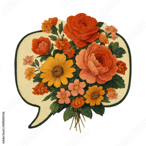 © Rawpixel.com, Naklejka premium PNG Floral speech bubble illustration.