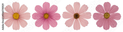 Fototapeta premium PNG Four pink cosmos flowers aligned, element set on transparent background